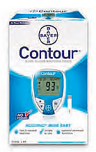 BAYER CONTOUR METERThe contour meter offers two levels of personalization. Level one has Bayer’s no coding technology which automatically calibrates the unit with each test. It has a large display making it easy to read and a fast 5-second test time. Level two offers the same easy testing as level one with advanced customizable features such as: personal hi/lo settings; pre and post meal markers; selectable post-meal reminder; and 7, 14 or 30 day averages.