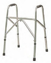 LIGHTWEIGHT RIGID WALKERThe non-folding design provides extra rigidity for use where space is not an issue. Angled legs provide maximum patient support in all directions and help resist tipping. Angled side brace helps support patients as they stand up and sit down. It fits easily around standard toilet fixtures. The durable 1” aluminum tubing provides maximum strength while remaining lightweight. Height adjustable with a 400lb weight capacity.