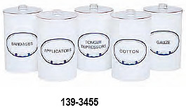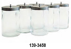 SUNDRY JARSThese jars can be purchased as a set or individually. They are available in fine quality, clear flint glass with overlapping stainless steel covers or in opaque plastic with lids. Jars are 7” high with a diameter of 4.25” and can be purchased labeled or unlabeled.